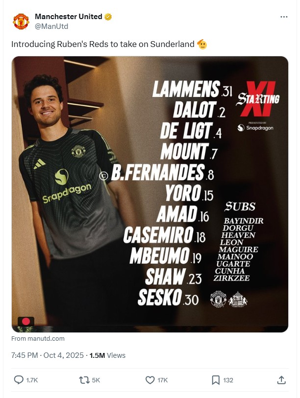 Bên cạnh sự thay đổi đột ngột ở vị trí thủ môn, việc tiền đạo Matheus Cunha không có tên trong đội hình xuất phát cũng khiến nhiều cổ động viên ngạc nhiên. Sau khi đá chính ở trận đấu với Brentford tuần trước, tiền đạo người Brazil đã phải nhường chỗ cho Mason Mount. Mount ra sân cùng với Bryan Mbeumo, hỗ trợ cho mũi nhọn tấn công duy nhất là Benjamin Sesko trong sơ đồ 3-4-2-1 mà vị huấn luyện viên người Bồ Đào Nha ưa thích. Quyết định điều chỉnh nhân sự và chiến thuật này cho thấy Amorim đang tích cực thử nghiệm và tìm kiếm công thức chiến thắng tối ưu, nhằm sớm đưa Manchester United trở lại quỹ đạo thành công.