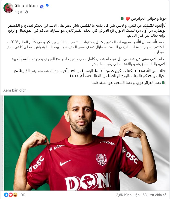 Trong bài đăng, chân sút 37 tuổi đã bày tỏ khao khát được khoác áo "Những chú cáo sa mạc" lần cuối cùng để tham dự Vòng chung kết World Cup 2026, một nguyện vọng đã tạo ra làn sóng ý kiến trái chiều từ người hâm mộ.